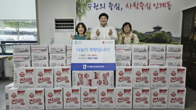 [NWS¹æ¼Û=Çѽ¸ñ ±âÀÚ]9¿ù 25ÀÏ, ±æ¸²¼º ÀΰèÁ¡ÀÌ ´Ù°¡¿À´Â Ãß¼®À» ¸Â¾Æ ¼ö¿ø½Ã ÆÈ´Þ±¸ Àΰ赿 ÇàÁ¤º¹Áö¼¾ÅÍ¿¡ ¶ó¸é 100¹Ú½º¸¦ Àü´ÞÇß´Ù. ±æ¸²¼º ÀΰèÁ¡Àº 2022³â 10¿ùºÎÅÍ ÁöÁ¤µÈ 'Àΰ赿 »ç¶û³ª´®°¡°Ô 49È£'·Î, ¸Å³â ¸íÀý¸¶´Ù ¶ó¸éÀ» ±â¡¦