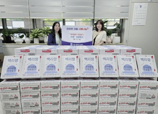 [NWS¹æ¼Û=Çѽ¸ñ ±âÀÚ]Áö³­ 25ÀÏ, ¼ö¿ø½Ã ÆÈ´Þ±¸ Áöµ¿ ¼ÒÀç Áß½Ä´ç ¹é¸®ÇâÀº Ãß¼® ¸íÀýÀ» ¸Â¾Æ Áöµ¿ÇàÁ¤º¹Áö¼¾Å͸¦ ¹æ¹®ÇÏ¿© ¾î·Á¿î ÀÌ¿ôµéÀ» À§ÇØ ¶ó¸é 100¹Ú½º¸¦ Àü´ÞÇß´Ù. ¹é¸®ÇâÀº ¸Å³â ¸íÀý¸¶´Ù ²ÙÁØÈ÷ ¶ó¸éÀ» ÈÄ¿øÇϸç Áö¿ª»çȸ ³ª¡¦