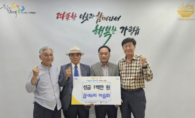 [NWS¹æ¼Û=Çѽ¸ñ ±âÀÚ]°¡Æò±º °¡ÆòÀ¾ À¾³»6¸® ¸¶À»È¸´Â ÃÖ±Ù °¡ÆòÀ¾ ÇàÁ¤º¹Áö¼¾Å͸¦ ¹æ¹®ÇØ Ãë¾à°èÃþ ÀÌ¿ôÀ» µ½±â À§ÇÑ ¼º±Ý 1¹é¸¸ ¿øÀ» Àü´ÞÇß´Ù. ±è¸í¿µ À¾³»6¸® ÀÌÀåÀº ¡°¸íÀýÀ» ¾ÕµÎ°í ¿ì¸® Áö¿ª Ãë¾à°èÃþ ÀÌ¿ôµéÀÌ ¼Ò¿ÜµÇÁö ¾Ê¾ÒÀ¸¡¦