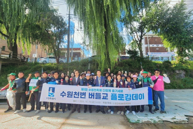 [NWS¹æ¼Û=Çѽ¸ñ ±âÀÚ]¼ö¿ø½Ã ±Ç¼±±¸ ¼¼·ù1µ¿ ÇàÁ¤º¹Áö¼¾ÅÍ´Â Áö³­ 24ÀÏ, ¼ö¿øÃµÃàÁ¦°¡ ±ú²ýÇÑ Çà»çÀåÀ¸·Î ¸¸µé±â À§ÇØ ¼ö¿øÃµº¯ Àϴ븦 »êÃ¥Çϸç û¼ÒÇÏ´Â Ç÷α뵥À̸¦ ½Ç½ÃÇß´Ù. À̹ø Ç÷α뵥ÀÌ´Â ¼¼·ù1µ¿ ´Üü¿øÀ» ºñ·ÔÇØ °ø¹«¿ø, ¡¦