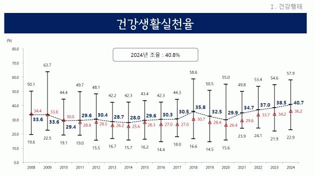 [NWS¹æ¼Û=Çѽ¸ñ ±âÀÚ]°æ±âµµ¹ÎÀÇ ±Ý¿¬, ÀýÁÖ, °È±â ½Çõ ÁöÇ¥ÀÎ ¡®°Ç°­»ýȰ½ÇõÀ²¡¯ÀÌ 2008³â Áö¿ª»çȸ°Ç°­Á¶»ç ÀÌÈÄ Áö³­ÇØ ¿ª´ë ÃÖ°íÄ¡¸¦ ±â·ÏÇß´Ù´Â Á¶»ç °á°ú°¡ ³ª¿Ô´Ù. °æ±âµµ´Â Áö³­ÇØ µµ³» 48°³ º¸°Ç¼Ò¿¡¼­ ½Ç½ÃÇÑ ¡®2024³â Áö¿ª¡¦