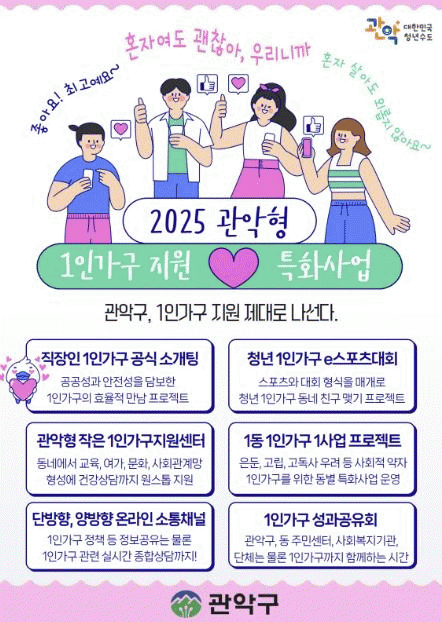 [NWS¹æ¼Û=Çѽ¸ñ ±âÀÚ]¼­¿ï½Ã ÀÚÄ¡±¸ Áß 1Àΰ¡±¸ ºñÀ²ÀÌ °¡Àå ³ôÀº °ü¾Ç±¸°¡ ¡®2025³â °ü¾ÇÇü 1Àΰ¡±¸ Áö¿ø Ưȭ»ç¾÷ Á¾ÇÕ°èȹ¡¯À» ¼ö¸³Çϰí 1Àΰ¡±¸ Áö¿ø¿¡ º»°ÝÀûÀ¸·Î ³ª¼¹´Ù. ¿ÃÇØ ±¸´Â Ãë¾à°èÃþ 1Àΰ¡±¸¸¦ ºñ·ÔÇØ, 1Àΰ¡±¸¶ó¸é ¸ðµÎ¡¦