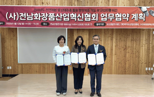 [NWS¹æ¼Û=Çѽ¸ñ ±âÀÚ]Àü¶ó³²µµ»ê¸²¿¬±¸¿øÀº 12ÀÏ »ê¸²¿¬±¸¿ø¿¡¼­ (»ç)Àü³²È­Àåǰ»ê¾÷Çõ½ÅÇùȸ, Àü³²¹ÙÀÌ¿ÀÁøÈï¿ø°ú ±â´É¼º È­Àåǰ »ê¾÷ÀÇ Áö¼Ó°¡´ÉÇÑ ¹ßÀüÀ» À§ÇÑ 3ÀÚ ¾÷¹«Çù¾à(MOU)À» Çß´Ù. À̹ø Çù¾àÀº Àü³²Áö¿ª dzºÎÇÑ »ê¸²ÀÚ¿øÀ» ±â¡¦