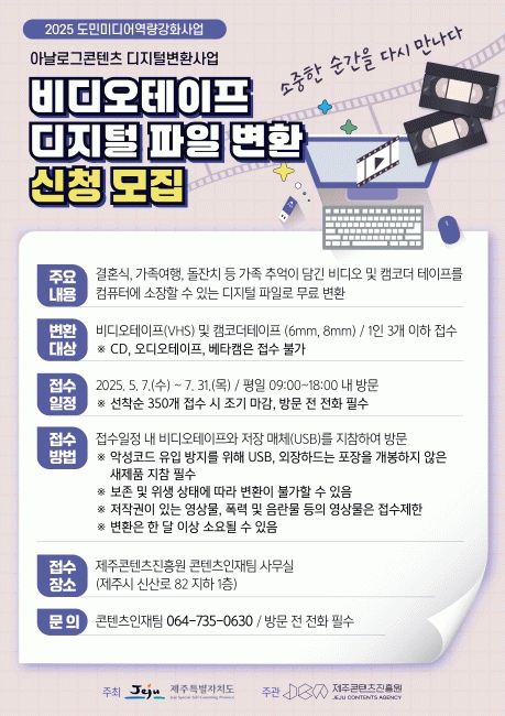 [»çȸ] Á¦ÁÖÄÜÅÙÃ÷ÁøÈï¿ø, ¡°¼ÒÁßÇÑ Ãß¾ï, µðÁöÅзΠ´Ù½Ã ¸¸³ª´Ù¡± ºñµð¿ÀÅ×ÀÌÇÁ º¯È¯»ç¾÷ ½ÃÇà |2025. 05.12