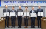 [NWS방송=허은서 기자]수원특례시가 경기창조경제혁신센터, 4개 대학과 협력해 대학의 기술창업을 발굴하고, 지원한다. 수원시와 경기창조경제혁신센터, 4개 대학은 30일 시청 상황실에서 ‘창업도시 수원 기술창업 혁신 관·학 업무협약’을 체결하고, 협력을 약속했다. 협약 기관들은 대학의 우수한 연구 성과, 인적 자원을 보유한 우수 기술창업기업을 발굴하고, 기술의 사업화를 촉진하기 위해 협력하기로 했다. 수원시는 수원기업새빛펀드의 수원기업 의무투자 약정액으로 투자를 유치하고, 경기창조경제혁신센터는 기업에 멘토링, 엑셀러레...