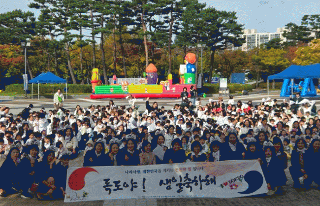 [NWS¹æ¼Û=Çѽ¸ñ ±âÀÚ]¼ö¿ø½Ã¾î¸°ÀÌÁýÇùÀÇȸ ±¹°ø¸³ºÐ°ú´Â 24ÀÏ ¼ö¿ø¿ùµåÄŰæ±âÀå Áß¾Ó±¤Àå¿¡¼­ ¡®µ¶µµ¾ß »ýÀÏ ÃàÇÏÇØ!¡¯¸¦ ÁÖÁ¦·Î µ¶µµÀÇ ³¯ ±â³äÇà»ç¸¦ ¿­¾ú´Ù. À̳¯ Çà»ç¿¡´Â 16°³ ±¹°ø¸³ ¾î¸°ÀÌÁý º¸À°±³Á÷¿ø, ¿µÀ¯¾Æ¿Í °¡Á· µî 600¡¦
