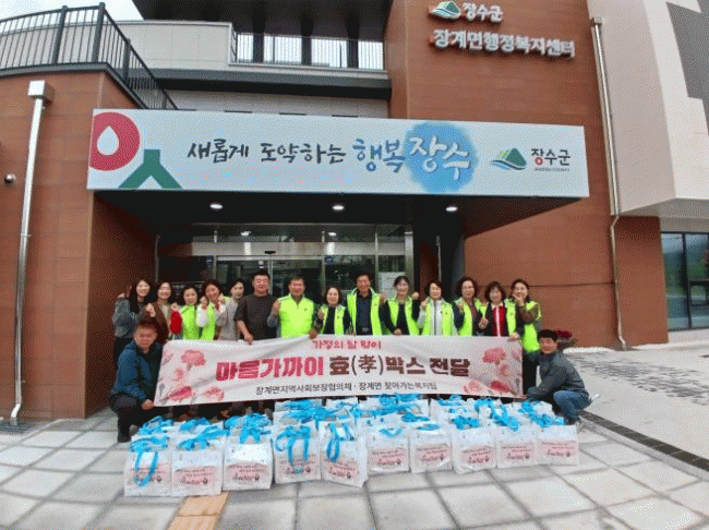 [NWS¹æ¼Û=Çѽ¸ñ ±âÀÚ]Àå¼ö±º Àå°è¸é Áö¿ª»çȸº¸ÀåÇùÀÇü´Â °¡Á¤ÀÇ ´ÞÀ» ¸Â¾Æ Áö¿ª ³» ¾î¸£½Å 50¸í¿¡°Ô ¡®È¿(üø)¹Ú½º¡¯¸¦ Àü´ÞÇÏ¸ç µû¶æÇÑ ÀÌ¿ô »ç¶ûÀ» ½ÇõÇß´Ù°í 12ÀÏ ¹àÇû´Ù. ¡®È¿(üø)¹Ú½º¡¯´Â ÇùÀÇü À§¿øµéÀÌ Á÷Á¢ ´ë»óÀÚ¸¦ ¹ß±¼ÇØ¡¦