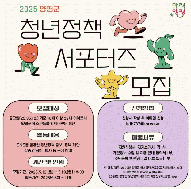 [»çȸ] ¾çÆò±º 2025³â û³âÁ¤Ã¥ ¼­Æ÷ÅÍÁî Âü¿©ÀÚ ¸ðÁý |2025. 05.12