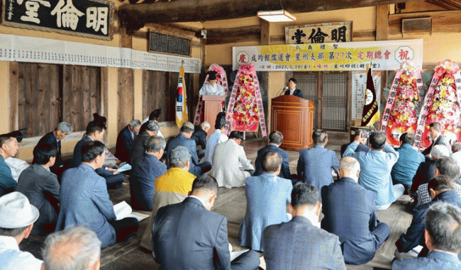[NWS¹æ¼Û=Çѽ¸ñ ±âÀÚ]¼º±Õ°üÀ¯µµÈ¸ ¼ºÁÖÁöºÎ Áö³­ 10ÀÏ ¿ÀÀü 11½Ã ¼ºÁÖÇâ±³ ¸í·û´ç¿¡¼­ Á¦27Â÷ Á¤±âÃÑȸ¸¦ °³ÃÖÇß´Ù. À̳¯ Çà»ç¿¡´Â À̺´È¯ ¼ºÁÖ±º¼ö¸¦ ºñ·ÔÇØ ¼ºÁÖ±ºÀÇȸ ÀÇÀå, À¯¸²´ÜüÀå µî 30¿© ¸íÀÌ Âü¼®ÇßÀ¸¸ç, °³È¸½Ä¿¡ ÀÌ¾î ±¹¡¦