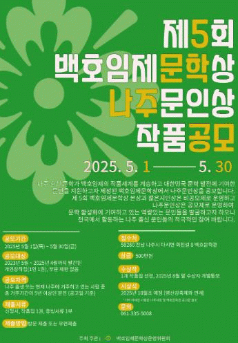 [»çȸ] ³ªÁÖ½Ã, Á¦5ȸ ¹éÈ£ÀÓÁ¦¹®ÇÐ»ó ³ªÁÖ¹®ÀÎ»ó °ø¸ð |2025. 05.12