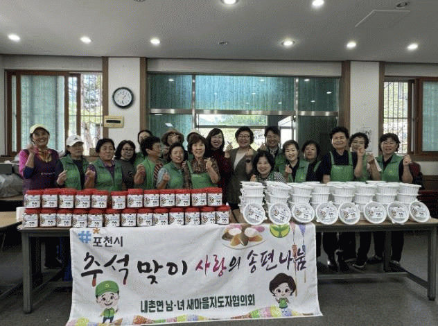 [NWS¹æ¼Û=Çѽ¸ñ ±âÀÚ]Æ÷õ½Ã ³»ÃÌ¸é ³²³à »õ¸¶À»ÁöµµÀÚÇùÀÇȸ´Â Áö³­ 25ÀÏ ³»Ã̸éÇàÁ¤º¹Áö¼¾ÅÍ ³» »õ¸¶À»ºÎ³àȸ Á¶¸®°ø°£¿¡¼­ ¡®Ãß¼®¸ÂÀÌ »ç¶ûÀÇ ¼ÛÆí ³ª´® Çà»ç¡¯¸¦ ÁøÇàÇß´Ù. À̹ø Çà»ç´Â ³²³à »õ¸¶À»ÁöµµÀÚÇùÀÇȸ ¹× Á¦5657ºÎ´ë ±ºÀ塦