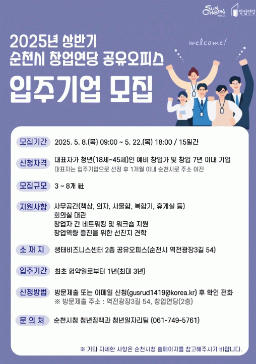 [»çȸ] ¼øÃµ½Ã â¾÷¿¬´ç, û³â â¾÷°¡¸¦ À§ÇÑ ÀÔÁÖ±â¾÷ ¸ðÁý |2025. 05.12