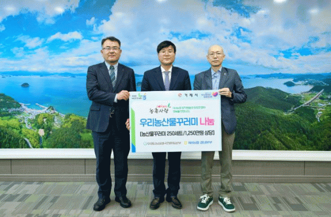 [NWS¹æ¼Û=Çѽ¸ñ ±âÀÚ]Àü±¹±ÝÀ¶»ê¾÷³ëµ¿Á¶ÇÕ NH³óÇùÁöºÎ °æ³²º»ºÎ¿Í NH³óÇù °ÅÁ¦½ÃÁöºÎ´Â 12ÀÏ °ÅÁ¦½ÃûÀ» ¹æ¹®ÇØ ¡®³óÃÌ»ç¶û ¿ì¸®³ó»ê¹° ²Ù·¯¹Ì¡¯250¹Ú½º(1250¸¸¿ø »ó´ç)¸¦ Àü´ÞÇß´Ù. (»ç)µµ³ó»ó»ý±¹¹Î¿îµ¿º»ºÎ°¡ ÁÖ°üÇÏ°í ½Å¿ëÄ«µå »ç¡¦