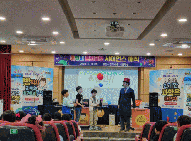 [NWS¹æ¼Û=Çѽ¸ñ ±âÀÚ] ±èõ½Ã¸³µµ¼­°üÀº Áö³­ 5¿ù 10ÀÏ µÎ Â÷·Ê¿¡ °ÉÃÄ, ½Ãû°¢½Ç¿¡¼­ ¾î¸°ÀÌ µ¿¹Ý °¡Á· 200¸íÀÌ Âü¼®ÇÑ °¡¿îµ¥ ¹®È­ °ø¿¬ '»çÀ̾𽺠¸ÅÁ÷'À» ¼ºÈ²¸®¿¡ °³ÃÖÇß´Ù°í ¹àÇû´Ù. '»çÀ̾𽺠¸ÅÁ÷'Àº °úÇÐ ¸¶¼ú °ø¿¬À¸·Î, 5¿ù¡¦
