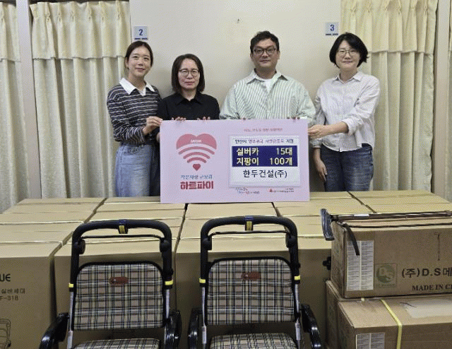 [NWS¹æ¼Û=Çѽ¸ñ ±âÀÚ]¾È»ê½Ã´Â Áö³­ 25ÀÏ ÇѵΰǼ³(ÁÖ)·ÎºÎÅÍ »çµ¿ °íÇ⸶À»¾ÆÆÄÆ®¿¡ °ÅÁÖÇÏ´Â ¿µÁֱͱ¹ »çÇÒ¸°µ¿Æ÷µéÀ» À§ÇÑ º¸Çà º¸Á¶±â 15´ë¿Í ÁöÆÎÀÌ 100°³¸¦ ±âŹ¹Þ¾Ò´Ù°í 26ÀÏ ¹àÇû´Ù. ÇѵΰǼ³(ÁÖ)Àº °ü³» Á¾ÇÕ¡¤Àü¹® °Ç¼³ ±â¾÷¡¦