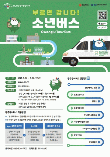[NWS¹æ¼Û=Çѽ¸ñ ±âÀÚ]±¤ÁÖ±¤¿ª½Ã´Â ±¤ÁÖ°ü±¤°ø»ç¿Í ÇÔ²² 5¡¤18¹ÎÁÖÈ­¿îµ¿ »çÀûÁö¿Í ÇѰ­ ÀÛ°¡ÀÇ ¼Ò¼³ ¡®¼Ò³âÀÌ ¿Â´Ù¡¯ÀÇ ¹è°æÁö¸¦ ¼øÈ¸ÇÏ´Â ¡®¼Ò³â¹ö½º¡¯¸¦ 16ÀϺÎÅÍ 30ÀϱîÁö ¿îÇàÇÑ´Ù. ¡®¼Ò³â¹ö½º¡¯´Â ÀÌ¿ëÀÚ°¡ ±¤ÁÖÅõ¾î¹ö½º ¾ÛÀ» Å롦