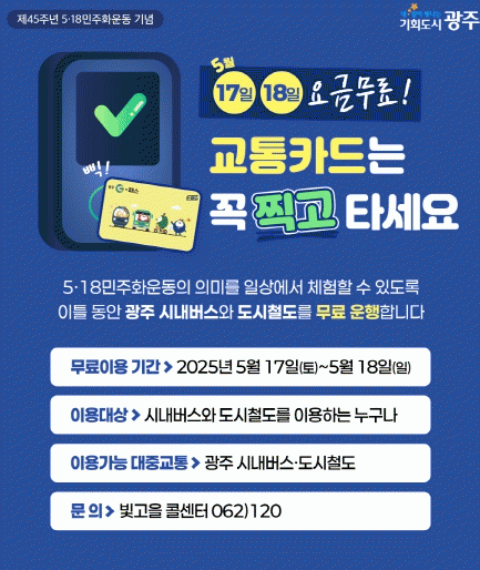 [»çȸ] ±¤ÁÖ±¤¿ª½Ã, 5¿ù 17¢¦18ÀÏ ¡®´ëÁß±³Åë ¹«·á¡¯ ¿îÇà |2025. 05.12
