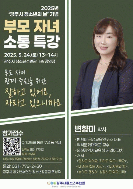 [NWS¹æ¼Û=Çѽ¸ñ ±âÀÚ]±¤Áֽà û¼Ò³â¼ö·Ã°üÀº 2025³â ±¤Áֽà û¼Ò³âÀÇ ³¯À» ±â³äÇØ ¿À´Â 24ÀÏ ¿ÀÈÄ 1½ÃºÎÅÍ 2½Ã±îÁö û¼Ò³â¼ö·Ã°ü 1Ãþ °ø¿¬Àå¿¡¼­ ¡®ºÎ¸ð ÀÚ³à ¼ÒÅë Æ¯°­¡¯À» °³ÃÖÇÑ´Ù°í 12ÀÏ ¹àÇû´Ù. À̹ø Ư°­Àº º¯Çâ¹Ì ¹Ú»ç(º¯Çâ¹Ì ±à¡¦