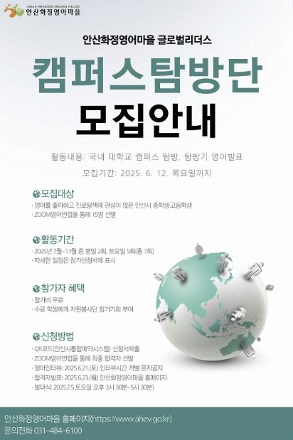 [NWS¹æ¼Û=Çѽ¸ñ ±âÀÚ]¾È»ê½Ã ¾È»êÈ­Á¤¿µ¾î¸¶À»Àº ¿À´Â 6¿ù 12ÀϱîÁö °ü³» Áß¡¤°íµîÇлýÀ» ´ë»óÀ¸·Î ¡®±Û·Î¹ú¸®´õ½º Ä·ÆÛ½ºÅ½¹æ´Ü¡¯ ÇÁ·Î±×·¥ Âü°¡ÀÚ¸¦ ¸ðÁýÇÑ´Ù°í 12ÀÏ ¹àÇû´Ù. ¡®±Û·Î¹ú¸®´õ½º Ä·ÆÛ½ºÅ½¹æ´Ü¡¯Àº °ü³» û¼Ò³âµéÀÌ ´Ù¾çÇÑ¡¦