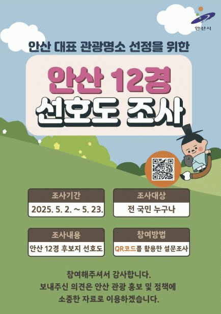 [»çȸ] ¾È»ê½Ã, '¾È»ê12°æ' ÃÖÁ¾ ¼±Á¤À» À§ÇÑ Àü±¹¹Î ¼±È£µµ Á¶»ç |2025. 05.12