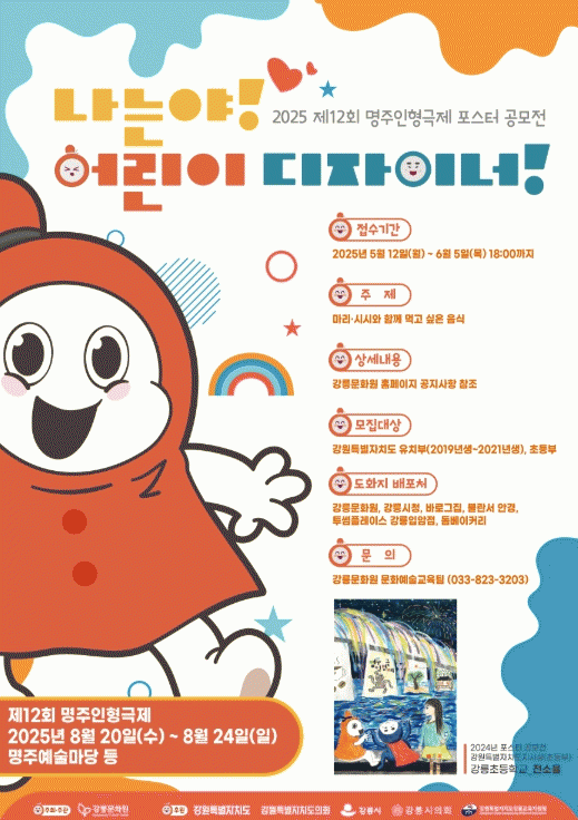 [NWS¹æ¼Û=Çѽ¸ñ ±âÀÚ]°­¸ª¹®È­¿øÀº 12ÀϺÎÅÍ Á¦12ȸ ¸íÁÖÀÎÇü±ØÁ¦ Æ÷½ºÅÍ °ø¸ðÀü ¡®³ª´Â¾ß! ¾î¸°ÀÌ µðÀÚÀ̳Ê!¡¯¸¦ °³ÃÖÇÑ´Ù. À̹ø °ø¸ðÀü ÁÖÁ¦´Â ¸¶¸®¡¤½Ã½Ã¿Í ÇÔ²² ¸Ô°í ½ÍÀº À½½ÄÀ¸·Î, °­¿øÆ¯º°ÀÚÄ¡µµ ³»¿¡ °ÅÁÖÇÏ´Â À¯Ä¡ºÎ(2019³â»ý¡¦
