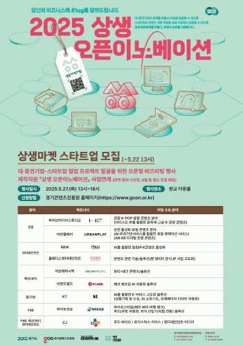 [NWS¹æ¼Û=Çѽ¸ñ ±âÀÚ]°æ±âµµ¿Í °æ±âÄÜÅÙÃ÷ÁøÈï¿øÀº »õ½Ï±â¾÷(½ºÅ¸Æ®¾÷) ÆÇ·Î °³Ã´°ú ´ë¡¤Áß°ß±â¾÷ Çù¾÷À» Áö¿øÇÏ´Â ¡®2025³â »ó»ý¸¶ÄÏ¡¯ Âü¿©±â¾÷À» ¸ðÁýÇÑ´Ù. ¡®»ó»ý¸¶ÄÏ¡¯Àº ÄÜÅÙÃ÷ ºÐ¾ß »õ½Ï±â¾÷¿¡¼­ °³¹ß/¿¬±¸/Á¦ÀÛÇØ¿Â Áַºоß, ¡¦