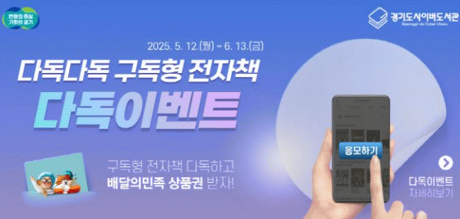 [NWS¹æ¼Û=Çѽ¸ñ ±âÀÚ]°æ±âµµ°¡ ±¸µ¶Çü ÀüÀÚÃ¥ ¼­ºñ½ºÀÇ ¸¸Á·µµ¸¦ ³ôÀ̰í, »ýȰ ¼Ó µ¶¼­ ¹®È­¸¦ Àå·ÁÇϱâ À§ÇØ ¿À´Â 6¿ù 13ÀϱîÁö ¡®2025³â º½ ½ÃÁð ÇÑÁ¤ ±¸µ¶Çü ÀüÀÚÃ¥ ´Ùµ¶¿Õ ¼±Á¤ À̺¥Æ®¡¯¸¦ ½Ç½ÃÇÑ´Ù. Çà»ç ´ë»óÀº °æ±âµµ»çÀ̹öµµ¼­¡¦