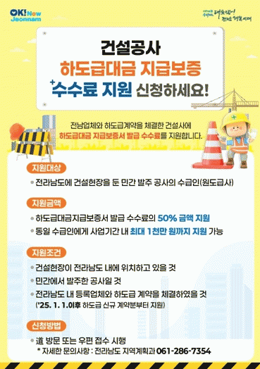[»çȸ] Àü³²µµ, °Ç¼³»ç Çϵµ±Þ´ë±Ý Áö±Þº¸Áõ ¼ö¼ö·á Áö¿ø |2025. 05.10