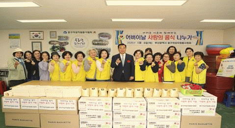 [NWS¹æ¼Û=Çѽ¸ñ ±âÀÚ]ºÎ»ê Áß±¸ ¿©¼ºÀÚ¿øºÀ»ç¿øÈ¸´Â 5¿ù 8ÀÏ, ¾î¹öÀ̳¯À» ¸ÂÀÌÇÏ¿© °ü³» Ȧ·Î ¾î¸£½Å ¾à 110¼¼´ë¸¦ ´ë»óÀ¸·Î °õ±¹, ·ÑÄÉÀÌÅ©¸¦Àü´ÞÇϰí Ä«³×À̼ÇÀ» ´Þ¾Æµå¸®´Â¡º¾î¹öÀ̳¯ »ç¶ûÀÇ À½½Ä ³ª´®¡»Çà»ç¸¦°³ÃÖÇß´Ù. Á¶Àç¼÷ ȸ¡¦