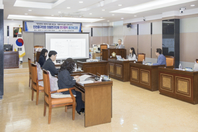 [NWS¹æ¼Û=Çѽ¸ñ ±âÀÚ]ÀÎõ Áß±¸ÀÇȸ ÀÇ¿ø¿¬±¸´ÜüÀÎ ¡®¿øµµ½É¡¤¿µÁ¾ ¹ßÀü¿¬±¸È¸(´ëÇ¥ÀÇ¿ø Á¤µ¿ÁØ)¡¯´Â Áö³­ 7ÀÏ Áß±¸ÀÇȸ¿¡¼­ ¿¬±¸¿ë¿ª ÁøÇà »óȲÀ» Á¡°ËÇϰí, ÇâÈÄ ¿¬±¸ÁøÇà ¹æÇâÀ» ³íÀÇÇϱâ À§ÇÑ Áß°£º¸°íȸ¸¦ °¡Á³´Ù°í ¹àÇû´Ù. À̳¯¡¦