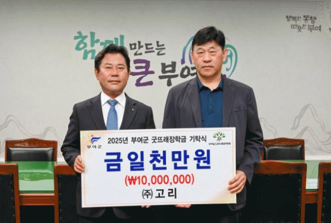 [NWS¹æ¼Û=ÇãÀº¼­ ±âÀÚ]¢ß°í¸®´Â 9ÀÏ ºÎ¿©±ºÃ»À» ¹æ¹®ÇØ ÀÎÀç À°¼ºÀ» À§ÇÑ ÀåÇÐ±Ý 1õ¸¸ ¿øÀ» (Àç)ºÎ¿©±º±Â¶ß·¡ÀåÇÐȸ¿¡ ±âŹÇß´Ù. ¢ß°í¸®´Â Àü¶óºÏµµ Á¤À¾½Ã¿¡ À§Ä¡ÇÑ ÇÕ¼º¼öÁöÁ¦Ç° Á¦Á¶È¸»ç·Î Áö³­ 2019³âºÎÅÍ ÇöÀç±îÁö ²ÙÁØÈ÷ ÀåÇбݡ¦