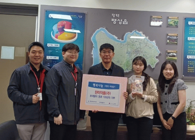 [NWS¹æ¼Û=Çѽ¸ñ ±âÀÚ]Ãß¼®À» ¸Â¾Æ ÆòÅÃ½Ã ÆØ¼ºÀ¾ ÃßÆÈ»ê¾÷´ÜÁö¿¡ ÀÖ´Â 'Çѹ̾àǰ ÆòÅÃÁ¦Á¶º»ºÎ'¿¡¼­ ÆØ¼ºÀ¾ ÇàÁ¤º¹Áö¼¾ÅÍ¿¡ Á¤¼º½º·´°Ô Á÷Á¢ ¸¸µç ÇѰú 120»óÀÚ¸¦ ±âºÎÇÏ¿© ÈÆÈÆÇÑ ³ª´®ÀÇ ¼Õ±æÀ» ÀüÇß´Ù. À̳¯ Àü´Þ½Ä¿¡¼­ À̱ٿµ ÆØ¼º¡¦