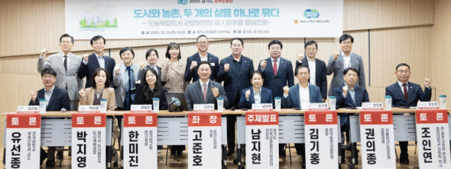 [NWS¹æ¼Û=Çѽ¸ñ ±âÀÚ]°æ±âµµÀÇȸ À̺´±æ ÀÇ¿ø(±¹¹ÎÀÇÈû, ³²¾çÁÖ7)Àº 10¿ù 23ÀÏ ÆÄÁÖ½ÃÀÇȸ¿¡¼­ ¿­¸° 'µµ½Ã¿Í ³óÃÌ, µÎ °³ÀÇ »îÀ» Çϳª·Î ¹­´Ù - µµ³óº¹ÇÕµµ½Ã ±ÕÇü¹ßÀüÀÇ ±æ / ÆÄÁÖ¸¦ Áß½ÉÀ¸·Î' Á¤Ã¥Åä·Ðȸ¿¡ Âü¼®ÇØ Ãà»ç¸¦ ÅëÇØ ¡°³²¾ç¡¦