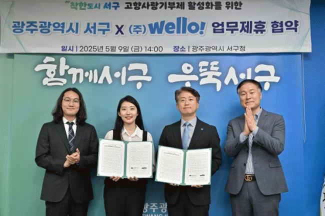 [NWS¹æ¼Û=Çѽ¸ñ ±âÀÚ]±¤ÁÖ±¤¿ª½Ã ¼­±¸°¡ °íÇâ»ç¶û±âºÎÁ¦ Ȱ¼ºÈ­¿Í Áö¿ª°æÁ¦ ÀÚ»ý·Â °­È­¸¦ À§ÇØ ¹Î°£ Ç÷§ÆûÀÎ ¢ßÀ£·Î(´ëÇ¥ ±èÀ¯¸®¾È³ª)¿Í 9ÀÏ ¾÷¹«Çù¾àÀ» ü°áÇϰí, Àü±¹ ÃÖÃÊ·Î ¸ð¹ÙÀÏ ±â¹Ý °íÇâ»ç¶û±âºÎ ¼­ºñ½º¸¦ µµÀÔÇÑ´Ù. À̹ø Çù¡¦