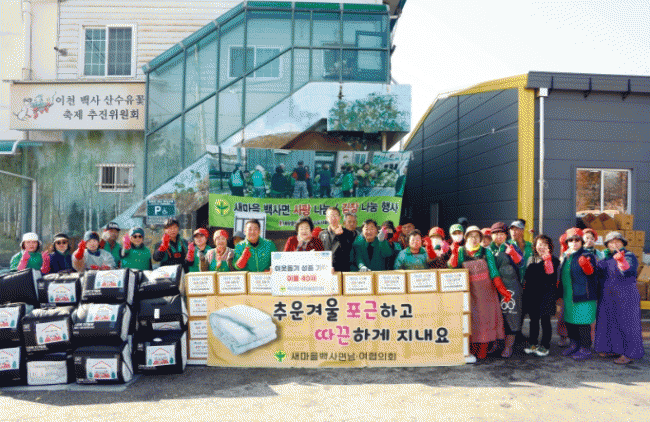 [NWS¹æ¼Û=Çѽ¸ñ ±âÀÚ]¹é»ç¸é»õ¸¶À»ÇùÀÇȸ´Â Áö³­ 11¿ù 14ÀÏ µµ¿òÀÇ ¼Õ±æÀÌ ÇÊ¿äÇÑ º¹Áö »ç°¢Áö´ë ÀÌ¿ô¿¡ ±èÀå ³ª´® ¹× ÀÌºÒ ¼ºÇ° ±âŹ Çà»ç¸¦ ½Ç½ÃÇß´Ù. ±èÀå ³ª´® Çà»ç¸¦ À§ÇØ ¹é»ç¸é 26°³ ¸¶À» »õ¸¶À» ÁöµµÀÚ¿Í ºÎ³àȸÀå µîÀÌ ¸ðµÎ ¸ð¡¦