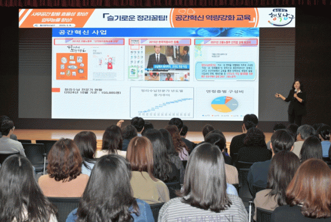 [NWS¹æ¼Û=Çѽ¸ñ ±âÀÚ] ¿ï»ê ³²±¸´Â 8ÀÏ ³²±¸ Á÷¿ø ´ë»óÀ¸·Î Á÷¿ø »ç¹«°ø°£ Ȱ¿ë È¿À²¼º Á¦°í ¹× ¾÷¹«´É·ü Çâ»óÀ» À§ÇÑ¡®½½±â·Î¿î Á¤¸®²ÜÆÁ, °ø°£Çõ½Å ¿ª·®°­È­ ±³À°¡¯À» ½Ç½ÃÇß´Ù. À̳¯ ±³À°Àº ³²±¸Ã» 6Ãþ ´ë°­´ç¿¡¼­ Á÷¿ø 150¿© ¸í¡¦