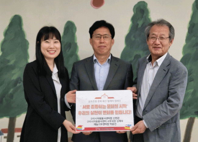 [NWS¹æ¼Û=Çѽ¸ñ ±âÀÚ]±¸¸®½ÃÀÚ¿øºÀ»ç¼¾ÅÍ´Â 7ÀÏ µû¶æÇÏ°í ¹è·ÁÇÏ´Â Çб³¹®È­¸¦ Á¶¼ºÇϱâ À§ÇÑ¡®»óÈ£Á¸Áß Çб³¹®È­ Á¶¼º ¸±·¹ÀÌ Ä·ÆäÀΡ¯¿¡ ½ÅÇö°ü ¼¾ÅÍÀå, ±èÇý¼÷ »ç¹«±¹Àå, ¹ÚÀ±¼± Àç´É±âºÎ¼¾ÅÍÀåÀÌ µ¿ÂüÇß´Ù°í ¹àÇû´Ù. À̹ø Ä·ÆäÀÎÀº¡¦