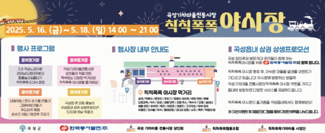 [°æÁ¦] °î¼º±âÂ÷¸¶À»ÀüÅë½ÃÀå, ¡®Ä¢Ä¢ÆøÆø ¾ß½ÃÀ塯 5¿ù 16ÀÏ °³¸· |2025. 05.08