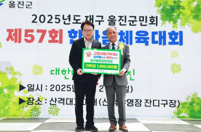 [NWS¹æ¼Û=Çѽ¸ñ ±âÀÚ] ¿ïÁø±ºÀº Áö³­ 4¿ù 27ÀÏ À籸 ¿ïÁø±º¹Îȸ Á¦57ȸ ÇѸ¶À½ üÀ°´ëȸ¿¡¼­ ±èÇпë À籸¿ïÁø±º¹ÎȸÀåÀ¸·ÎºÎÅÍ °íÇâ»ç¶û±âºÎ±Ý 100¸¸¿øÀ» ±âŹ¹Þ¾Ò´Ù. ±èÇпë ȸÀåÀº À۳⿡µµ °íÇâ»ç¶û¹Ú¶÷ȸ¿¡¼­ 100¸¸¿øÀ» ±âºÎÇßÀ¸¸ç¡¦