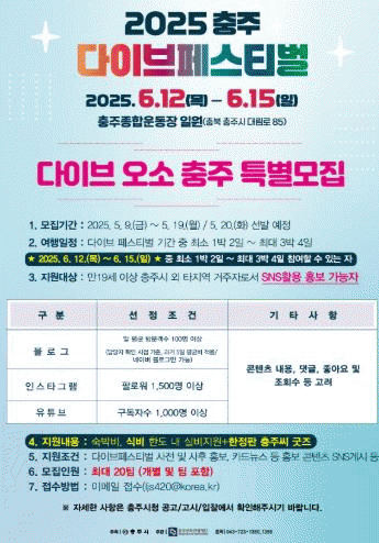 [»çȸ] ÃæÁֽà ¡®´ÙÀÌºê ¿À¼Ò(O-SO)ÃæÁÖ¡¯Âü°¡ÀÚ Æ¯º° ¸ðÁý |2025. 05.08