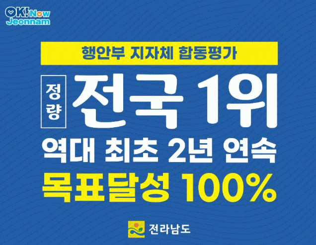 [NWS¹æ¼Û=Çѽ¸ñ ±âÀÚ]Àü¶ó³²µµ´Â ÇàÁ¤¾ÈÀüºÎÀÇ 2025³â(2024³â ½ÇÀû) ÁöÀÚü ÇÕµ¿Æò°¡ °á°ú Á¤·®ÁöÇ¥¿¡¼­ 2³â ¿¬¼Ó 100%·Î 1À§¸¦ ´Þ¼ºÇß´Ù°í ¹àÇû´Ù. ÀÌ´Â Áö³­ÇØ¿¡ À̾î Àü±¹ 17°³ ½Ã¡¤µµ °¡¿îµ¥ À¯ÀÏÇÏ°Ô Á¤·®ÁöÇ¥ 100% ´Þ¼ºÇÑ °ÍÀÌ´Ù¡¦
