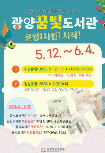 [»çȸ] ±¤¾ç½Ã µÎ ¹øÂ° ¾î¸°À̵µ¼­°ü ¡®±¤¾ç²Þºûµµ¼­°ü¡¯, 5¿ù 12ÀϺÎÅÍ ½Ã¹ü¿î¿µ µ¹ÀÔ |2025. 05.08