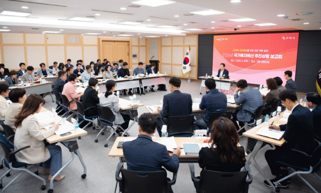[NWS¹æ¼Û=ÇãÀº¼­ ±âÀÚ]±¸¹Ì½Ã´Â 5¿ù 8ÀÏ ½Ãû ´ëȸÀǽǿ¡¼­ ¡®2026³â ±¹°¡ÅõÀÚ¿¹»ê ÃßÁø»óȲ º¸°íȸ¡¯¸¦ ¿­°í, ±¹ºñ È®º¸¸¦ À§ÇÑ Àü¹æÀ§ ´ëÀÀ¿¡ ³ª¼¹´Ù. À̹ø º¸°íȸ´Â ±èÀåÈ£ ½ÃÀå ÁÖÀç·Î ¿­·ÈÀ¸¸ç, °¢ ±¹ºñ»ç¾÷ ´ã´ç ±¹Àå ¹× °úÀå µî 8¡¦