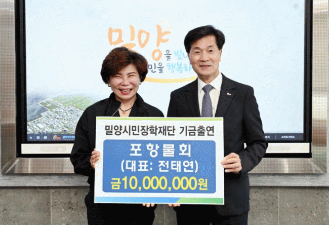 [NWS¹æ¼Û=ÇãÀº¼­ ±âÀÚ](Àç)¹Ð¾ç½Ã¹ÎÀåÇÐÀç´ÜÀº 8ÀÏ Áö¿ªÀÎÀç À°¼ºÀ» À§ÇÑ ÀåÇбâ±ÝÀ¸·Î Æ÷Ç×¹°È¸¿¡¼­ 1õ¸¸¿øÀ» ±âŹÇß´Ù°í ¹àÇû´Ù. Æ÷Ç×¹°È¸ ÀüÅ¿¬ ´ëÇ¥´Â¡°¹Ð¾çÀÇ ¹Ì·¡¸¦ Ã¥ÀÓÁú ¿ì¸® ÇлýµéÀÌ °æÁ¦Àû ¾î·Á¿ò ¾øÀÌ Çо÷¿¡ Àü³äÇÒ ¼ö ¡¦