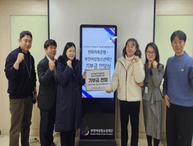 [NWS¹æ¼Û=Çѽ¸ñ ±âÀÚ]ºÎõ¿©¼ºÃ»¼Ò³âÀç´ÜÀº 1¿ù 22ÀÏ ÇÑÈ­ÀúÃàÀºÇàÀ¸·ÎºÎÅÍ ±âºÎ±ÝÀ» Àü´Þ¹Þ°í Áö¼Ó°¡´ÉÇÑ °¡Ä¡°øÀ¯ ¹× »çȸ°øÇå Ȱ¼ºÈ­¸¦ À§ÇØ Áö¿ª »çȸ »ó»ý Çù·ÂÀÇ ¶æÀ» ÇÔ²² ³ª´³´Ù. ºÎõ¿¡ º»»ç¸¦ µÐ ÇÑÈ­ÀúÃàÀºÇàÀÇ À̹ø ±âºÎ±Ý¡¦