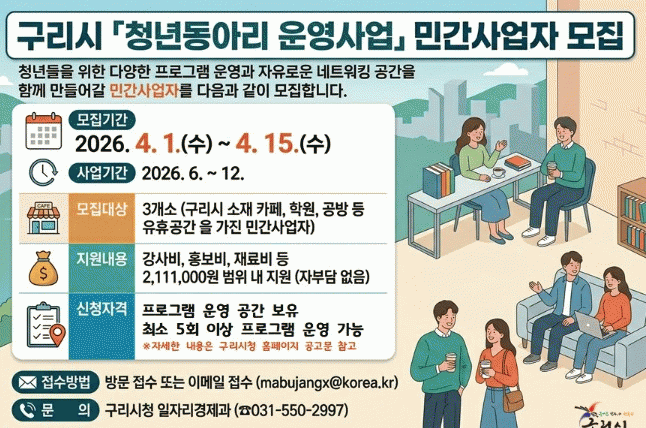 [°æÁ¦] ±¸¸®½Ã, 2026³â û³âµ¿¾Æ¸® ¿î¿µ ¹Î°£»ç¾÷ÀÚ ¸ðÁý |2026. 04.01
