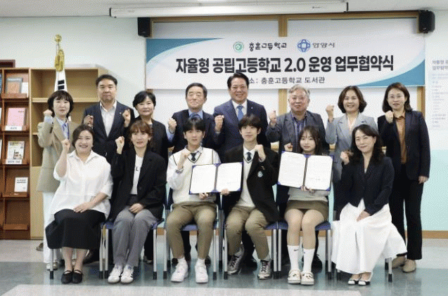 [NWS¹æ¼Û=Çѽ¸ñ ±âÀÚ]¾È¾ç½Ã°¡ Áö³­ 7ÀÏ ¿ÀÈÄ 3½Ã ÃæÈÆ°íµîÇб³ µµ¼­½Ç¿¡¼­ ÃæÈÆ°íµîÇб³¿Í ¡®ÀÚÀ²Çü °ø¸³°í 2.0¡¯ ÃßÁøÀ» À§ÇÑ ¾÷¹«Çù¾àÀ» ü°áÇß´Ù°í 8ÀÏ ¹àÇû´Ù. Çù¾à½ÄÀº ÃÖ´ëÈ£ ¾È¾ç½ÃÀå, °­ÀÎ½Ä ÃæÈÆ°íµîÇб³Àå, °­µæ±¸ ±¹È¸ÀÇ¿ø¡¦
