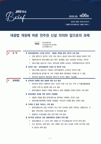 [NWS¹æ¼Û=Çѽ¸ñ ±âÀÚ]ÀüÁÖ½ÃÀÇ Á¤Ã¥¿¬±¸±â°üÀÎ ÀüÁÖ½ÃÁ¤¿¬±¸¿øÀº ¡®´ëµµ½Ã±Ç ±¤¿ª±³Åë°ü¸®¿¡ °üÇÑ Æ¯º°¹ý¡¯ °³Á¤¿¡ µû¸¥ ÀüÁÖ±Ç ½Å¼³ÀÇ ÀÇ¹Ì¿Í °úÁ¦¸¦ ´ãÀº ¡®JJRI À̽´ºê¸®ÇÁ Á¦6È£¡¯¸¦ ¹ß°£Çß´Ù°í 8ÀÏ ¹àÇû´Ù. ´ë±¤¹ýÀº ´ëµµ½Ã¸¦ Áß¡¦