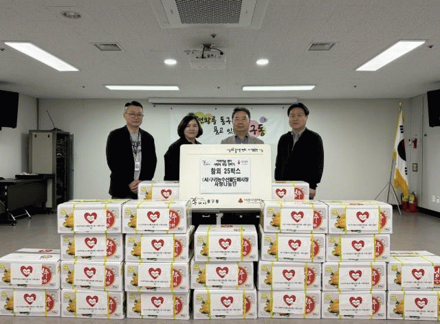 [NWS¹æ¼Û=Çѽ¸ñ ±âÀÚ]±¸¸®½Ã µ¿±¸µ¿Àº Áö³­ 7ÀÏ µ¿±¸µ¿ÇàÁ¤º¹Áö¼¾ÅÍ ´ëȸÀǽǿ¡¼­ (»ç)±¸¸®³ó¼ö»ê¹°µµ¸Å½ÃÀå »ç¶û³ª´®´ÜÀ¸·ÎºÎÅÍ Âü¿Ü 25¹Ú½º¸¦ Àü´Þ¹Þ¾Ò´Ù. À̼®¿ì (»ç)±¸¸®³ó¼ö»ê¹°µµ¸Å½ÃÀå »ç¶û³ª´®´Ü ÀÌ»çÀåÀº ¡°À۳⿡ ÀÌ¾î ¿ÃÇØµµ¡¦