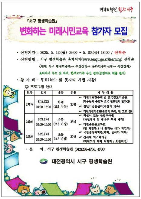 [»çȸ] ¿ª»ç¿¡¼­ AI±îÁö, ¼­±¸ ¹Ì·¡½Ã¹Î±³À° Âü°¡ÀÚ ¸ðÁý |2025. 05.08